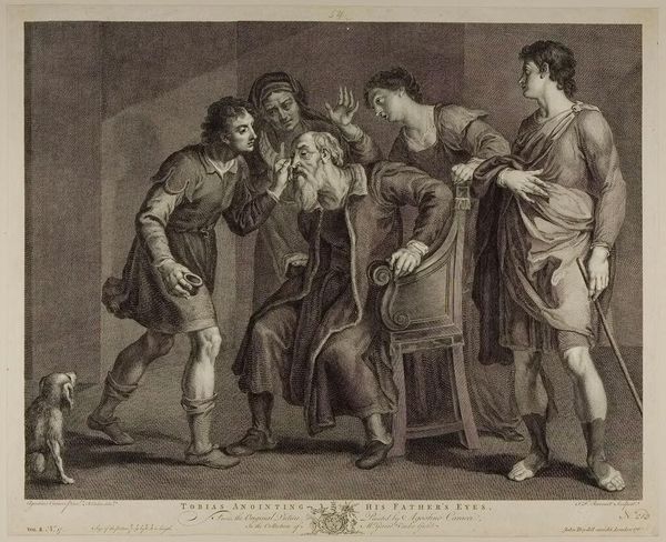 Editor: This is Francesco Borsi's "The Entombment," housed at the Harvard Art Museums. The somber mood really strikes me. What symbols or deeper meanings do you find in this piece? Curator: Observe how the figures cradle Christ’s body; their postures echo gestures of mourning passed through generations. The shroud isn't just cloth; it's a visual echo of sacrifice, a link to ancient funerary rites. What emotions does that evoke? Editor: It makes me think about the weight of grief, not just personal but almost a shared cultural memory. Curator: Exactly! Borsi uses these established visual cues to tap into a reservoir of collective understanding and sorrow, making the scene both personal and universal. Editor: So, the image is not just depicting a historical event but also activating a deeper emotional connection through symbols? Curator: Precisely. It serves as a potent reminder of shared humanity, loss, and enduring faith. Editor: That’s a fascinating perspective. I'll definitely look at art with a more symbolic eye now.
