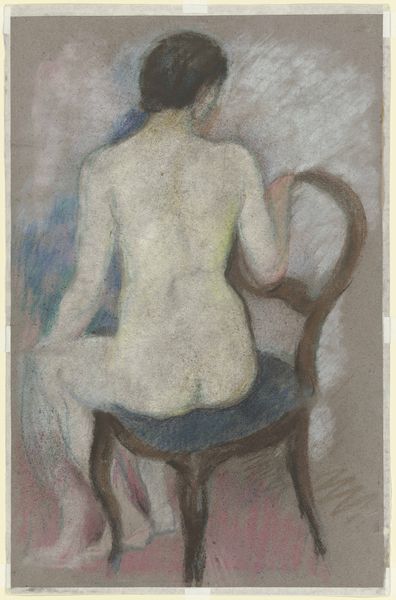 Editor: Here we have Jules Pascin's "Seated Nude with Black Stockings," painted around 1906. It’s an oil on canvas, and it strikes me as both intimate and a little melancholy. What stands out to you about this piece? Curator: The painting, for me, speaks to the complicated role of women at the turn of the 20th century, and art's reflection of these themes. We have a nude, yes, seemingly vulnerable in her pose, but consider the power dynamics at play here, the male gaze objectifying, while, in her own gaze, she seems self-aware, questioning. What do you think? Do the stockings change that reading for you at all? Editor: They definitely add a layer. It's not just nudity; it's a choice of attire, or undress, that feels deliberate. It feels performative. Curator: Precisely. It makes us consider: is she in control, or controlled? Think about the context – the burgeoning feminist movements, the changing social roles, but also the persistence of patriarchal structures. This wasn't painted in a vacuum. Pascin, as a male artist, presents a version of female sexuality – but how much of this is truly from a female perspective? Editor: It's fascinating how much the historical context changes how we interpret even the smallest details. I was initially just seeing the beautiful brushwork and the somewhat subdued colors, but now it feels loaded with meaning. Curator: That is how art gains its value; the formal elements serve as a point of entry to broader themes. So, in essence, her very gaze becomes a defiance or an act of resistance in a world determined to impose an identity upon her. Editor: I hadn't thought about it that way at all. Thanks, it’s so helpful to have my perspectives challenged in such a profound and creative way.