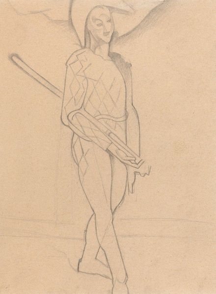 Editor: Here we have Wilhelm Marstrand's 1851 drawing, "Stående dalkarl med armene overkors," or "Standing man from Dalarna with his arms crossed." It's a quick sketch, almost comical, with this guy’s puffed sleeves and decorated breeches. What stands out to you when you look at this work? Curator: It's a fascinating look at how national identity was being constructed and circulated in the mid-19th century. Consider the "dalkarl," the man from Dalarna. He’s presented here in what appears to be traditional dress. But, was this actually everyday clothing or was it a costume? Think about the role artists played in shaping and popularizing images of regional and national identity. Editor: So, you're saying this isn't necessarily a straightforward depiction of reality? Curator: Precisely. It's mediated. Marstrand, as an artist showing his work, is actively participating in constructing an image of Swedishness. It begs the question: Who is this image for? Is it for the people of Dalarna themselves, or is it aimed at a broader, perhaps urban, audience eager for romanticized images of rural life? Editor: That's a really interesting point about the intended audience shaping the image. Did these sketches contribute to a broader narrative? Curator: Absolutely. They circulated, often through prints, exhibitions, and publications, contributing to a national narrative that was increasingly important in a time of political and social change. What purpose did this romanticized nationalism serve? Was it consolidating power? Fostering social cohesion? These images were never neutral. Editor: I never considered the power dynamics embedded in what seems like a simple drawing. Curator: That’s precisely the point. Even a quick sketch like this can be read as a social and political document, revealing much about the construction and dissemination of national identity through art. I’ll never see this artwork the same again!