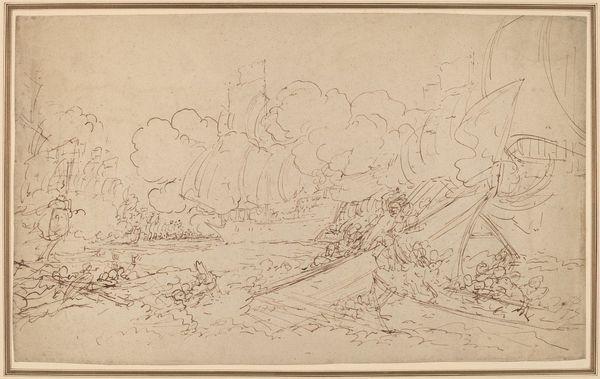 Editor: This is William Collins’s "A Haywain," a pencil drawing held at the Tate. It's quite small. The landscape feels vast, yet also very intimate because of the size. What structural elements define this composition for you? Curator: The tonal range is critical. Note the stark contrast between the foreground's defined shapes and the ethereal, almost dissolving background. The horizon line’s placement also segments the piece. How does that division affect your reading? Editor: It creates a sense of depth. The darker foreground pulls me in, and the lighter sky pushes back. Do you see any philosophical themes emerging through these elements? Curator: The dialectic between clarity and ambiguity mirrors the human relationship with nature. Collins invites contemplation on our place within a world both knowable and ultimately mysterious. The piece seems incomplete, yet totally satisfying. Editor: It's incredible how much feeling he conveys with so few lines. It made me think a lot about the structure of art. Curator: Indeed. Collins exemplifies how form itself can become a powerful carrier of meaning.
