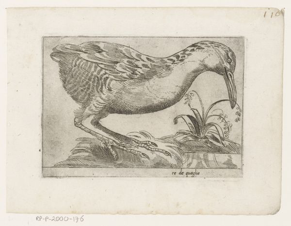 Curator: This is "The Carnivorous Vulture," plate 76 from Francisco de Goya's series "The Disasters of War." Goya likely created this etching and aquatint print on paper sometime between 1815 and 1863. Editor: My immediate impression? Oppressive. That massive, grotesque bird dominating the frame... it's nightmare fuel. Curator: It’s a stark image, definitely. The series documents the Peninsular War, and it's generally understood as Goya's indictment of human cruelty during conflict. We should consider that, during his lifetime, Spain was facing absolutism rule by Ferdinand VII. Editor: Indictment is putting it mildly. Look at the bird's almost theatrical pose! Its beak is slightly open. It's practically gloating, like a twisted master of ceremonies over some horrific spectacle. Who is the bird meant to be? Curator: Some scholars interpret the vulture as personifying those who profit from war. The figures in the background look like survivors, perhaps onlookers powerless to intervene. Some of those spectators even appear to be smiling. This evokes questions about complicity and power dynamics inherent to these socio-political realities. Editor: The passivity of the crowd behind it is chilling! They don't resist! It’s like watching a slow-motion apocalypse unfold, and the guy with the rope to the side, almost leading the vulture... That guy seems to enable this all. I think that vultures are meant to eat things that are dead, this looks like more of a "Vulture Renaissance"! Curator: I see what you mean; the figure does seem to usher the animal toward the scene's action, suggesting it's almost encouraged or enabled through existing societal hierarchies and imbalances of power. Even the aquatint's tonality and grainy shadows amplify a grim view of institutional structures, shaping public discourse in the Romantic Era. Editor: Makes you wonder what "disaster" Goya thought was worse. Death itself, or the carrion birds circling overhead as soon as it becomes profitable. It is difficult for me to separate those who profit from war to its original motivation. It has become normalized behavior through these structures that promote such practices! Curator: Precisely, and that’s a key point in appreciating Goya’s view. War extends past battles; its insidious corruption spreads throughout societies and institutions long after ceasefires. The print's true significance emerges as an unflinching analysis of not only violence, but our cultures and institutions responsible to contain violent episodes that inevitably become vulnerable themselves. Editor: Seeing that level of corruption immortalized... it’s more terrifying than any battlefield. Now there's a "disaster of war," indeed. These conversations will get you thinking.