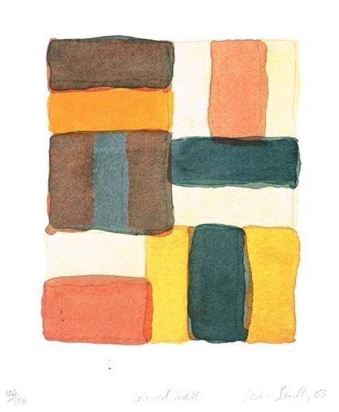 Sean Scully made this untitled watercolor back in '92, and right away, it's got that process-focused thing going on. It's all about these loose, blocky forms bumping up against each other in earthy reds, blues, yellows and blacks. The way he handles the watercolor is really where it's at. It's not about hiding the process; it's right there on the surface. Look at how the paint bleeds and pools, creating these soft edges. Then check out the way the colors interact – the blues sinking into the paper, the reds sitting a little more on top. It's like he's letting the paint do its own thing, guiding it but not controlling it completely. Notice the right hand side, where there's this interwoven pattern of yellow and black - kinda clumsy, right? The black oozes into the yellow, giving a sense of something being built or unbuilt. Scully's always messing with these ideas of structure and emotion, kinda like Agnes Martin, but with a bit more swagger. It's this back-and-forth between control and chaos, and that's where the magic happens. It's not about perfection; it's about the messy, beautiful struggle of making something.