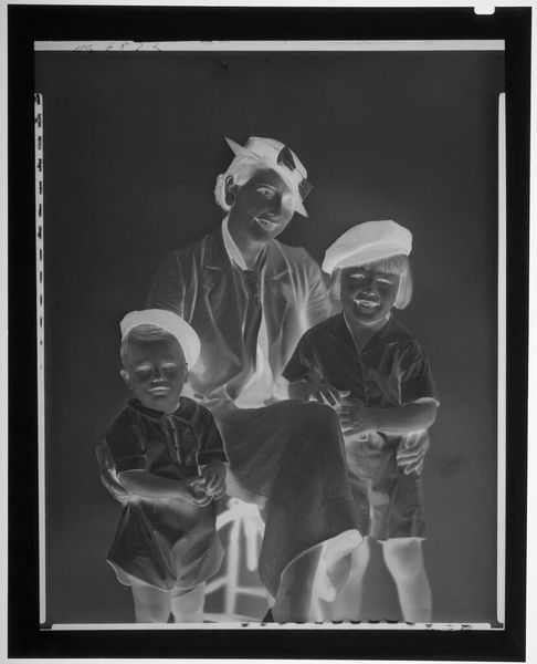 Editor: This is an untitled photographic print by Lucian and Mary Brown, showing a silhouette of three young girls, one holding a candle. It feels like a memory, almost dreamlike. What do you see in this piece? Curator: I see a potent commentary on girlhood and its performative aspects. The silhouettes, the way they're posed, it all speaks to the societal expectations placed on young women, even then. Editor: That's interesting, I hadn't considered that angle. Curator: Consider the candle—is it a symbol of hope, or a tool for navigating a world that obscures them? This image invites us to consider their place in a patriarchal society. It's a powerful visual statement. Editor: Thanks! I’ll definitely consider that during my research. Curator: It is crucial to see art not just as aesthetic objects but as active participants in social discourse.