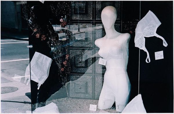 Editor: So, this is Anna Gaskell’s "Untitled #48 (Sally Salt Says)," a C-print from 1999. It's got this voyeuristic feel to it. A woman, or girl, is trying on a pale jumpsuit in a dark room filled with clothes, mostly white vintage dresses. How do you interpret this work? Curator: I see this photograph through the lens of constructed identity. Gaskell, working in the late 90s, really engaged with the socio-political narratives around femininity that were being challenged. Think about how fashion functions in the public sphere, it is always coded. We often don’t think how deeply implicated clothes are, fashion and display are in forming our sense of self. What happens in the private sphere of a closet or bedroom? Editor: That's interesting. So the darkness and the vintage clothes are a commentary on societal expectations? Curator: Precisely! The slightly blurred effect of the c-print adds another layer. Is she rehearsing for a social role? A "Sally Salt," whatever that may imply. Does it suggest that identity is somewhat staged, constructed from what is available – clothes, trends, expectations? Who is 'Sally Salt' and who creates her meaning? Editor: The title makes more sense now. It sounds like a prompt, a direction. This staged concept contrasts with what looks like a candid shot of a woman trying things in the safety of their home. But that isn't happening here! Curator: Right! Think of this as a space to consider, How do these elements inform each other? And, importantly, whose gaze are we adopting when we look at her looking? Are we being invited, or are we trespassing? Editor: I hadn’t considered the voyeuristic gaze as being a tool! Thanks! It’s fascinating how historical context reshapes the initial impression. Curator: Indeed! It is about learning to question what makes our own "Sally Salt," too!