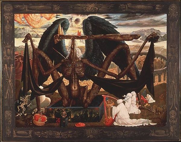 Curator: Michael Cheval’s 2016 oil painting, "Time to be a Queen," offers a particularly evocative tableau. My immediate impression is one of bizarre, yet playful elegance. What strikes you most, Editor? Editor: It's the *stuff*, the sheer materiality of it all! A young woman is adorned with a pumpkin-dress being pulled on what looks to be an absurd contraption, what is that all made from? Metal and other things? It gives it a very fantastical vibe. Curator: It certainly departs from convention. I see powerful visual symbols. Consider the pumpkin carriage – clearly a nod to Cinderella, but what happens after midnight? The dream of queenship remains, even as the clockwork of fate looms above. It speaks to enduring archetypes of aspiration. Editor: It is well done, indeed, what material and processes are needed to realize such surreal painting? Is it oil? The production of this would involve significant investment in both materials and labor. I can only begin to wonder where does it fits in our capitalist culture. Curator: You raise an interesting point. The artist is skillful, certainly grounded in Renaissance painting techniques but clearly pushing those boundaries into contemporary fantasy art. Notice how the use of dalmatians draw the eyes across the painting and are themselves a classic status symbol as pets of royalty. It reinforces an allegorical quality as much as questions it. Editor: True, but the surreal juxtaposition of elements—dogs, pumpkins, antiquated gears—that very labor intensive quality adds another dimension. Does it celebrate those modes of production or subtly critique? It really seems as if the artwork questions our conventional methods of craftship. Curator: I suspect Cheval invites both appreciation and a healthy skepticism. By interweaving recognizable symbols with dreamlike scenarios, he holds up a mirror, reflecting not just personal desire, but cultural obsession. Editor: Exactly! And those layers of symbolic weightiness cannot come out of thin air! The work itself becomes an active engagement with production and reception of wealth within certain socioeconomic boundaries. Thanks to Cheval and their method. Curator: Agreed. There’s real density here, inviting deeper reflection on the making and meaning. Editor: Indeed, it really made me think about art practices in relation to capitalism. Thank you for pointing the symbolism to me.
