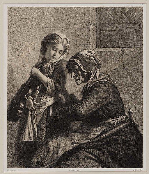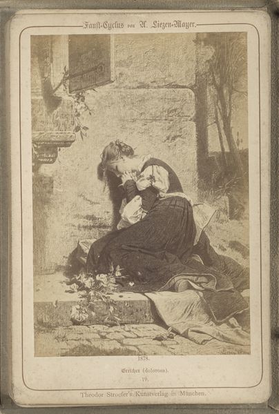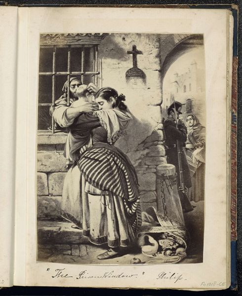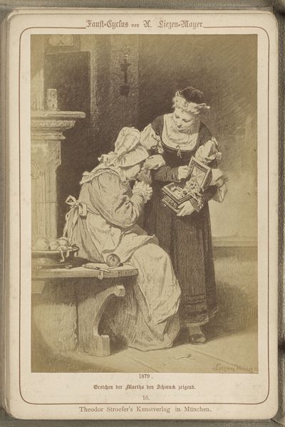 This photograph reproduces what is thought to be an engraving or print, made after a painting by Michael Frederick Halliday. The original artwork might have been oil on canvas, a medium requiring highly skilled craftsmanship, and considerable time. The depicted scene of courtship and domesticity would have resonated with the Victorian middle class, who could afford such luxury items. The photographic reproduction, on the other hand, democratized the image. Mass-produced using industrialized methods, it made the artwork accessible to a wider audience through the circulation of printed matter. The image shows the contrast between handmade and machine-made objects; the labor-intensive process that goes into the original painting, is completely different to the mechanical reproduction of the photograph. This allows us to consider how techniques, modes of production, and artistic expression intersect. The image's significance lies not only in its artistic merit, but also in its role as a commodity within a rapidly changing society.