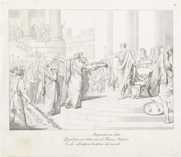 Bartolomeo Pinelli created this print, "The Tragic Death of Tarquin the Elder," as part of an illustrated volume of Roman history. Pinelli was working in a time of burgeoning nationalism, and his work, in both subject and style, reflects a longing for the grandeur of the past. The image depicts the assassination of the Etruscan King Tarquin, an event which led to the founding of the Roman Republic. The horror of the moment is palpable: those closest to the king recoil in terror and grief. But beyond this intimate circle, a phalanx of men brandish fasces, symbols of Roman power and unity. Pinelli’s Rome was a city grappling with its identity. By representing this foundational narrative, Pinelli asks his audience to remember both the cost and the necessity of revolution, suggesting that violence is sometimes a necessary tool for freedom and self-determination. This print is not just a historical record, but an emotionally charged reflection on power, sacrifice, and the birth of a nation.