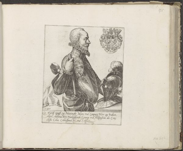 Here at the Rijksmuseum is Frans Hogenberg's portrait of Gebhard Truchesess, made sometime between 1540 and 1590. It's a small yet striking engraving, dominated by the subject's composed gaze. The tight, circular composition, framed by Latin text, draws attention to the face. Hogenberg masterfully uses line to define form and texture. Notice how the fine, dense lines create depth in Truchesess's garments, contrasting with the smoother treatment of his face. This interplay of texture and line directs our focus, emphasizing the sitter's status and character. The circular format, common in portraiture of the time, suggests both containment and completeness, reflecting the subject's position within a structured social order. Ultimately, the success of this portrait lies in Hogenberg's skillful manipulation of line and form. These elements do not merely depict a person, but also communicate ideas about identity, power, and representation. By analyzing these formal qualities, we gain insight into the cultural and philosophical context of the artwork.
