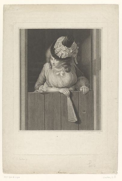 Editor: Here we have "Woman in Clown Costume with Hat in Hand" by François de Meersman, created in 1886, using dry media on paper. The textures feel quite interesting...almost rough, and the woman’s expression is both theatrical and a little sad. What’s your read on this piece? Curator: From a materialist perspective, it's fascinating to consider the artist's choice of dry media. What labor was involved in producing this image, and for what market? This print potentially democratizes the image; the texture, the hatching—suggests a mechanical reproducibility at odds with the singular 'aura' of a painting. It seems less about depicting her internal state, but more on how female identity is a 'performed' construction through labor. Does her melancholic air reflect the position of working women in that era? Editor: So, you’re focusing less on the symbolic reading of a sad clown, and more on how it functions as a commodity or relates to the work of female entertainers at the time? Curator: Precisely! The clown is not simply a figure of amusement but an occupation, a means of production, with implications of its consumption and social meaning of this dry media drawing. How does the proliferation of such images impact ideas around female representation? How many copies could de Meersman produce? What are the economics here? Editor: That's really insightful! I hadn’t considered how the *making* of the artwork influences its meaning, connecting her lived experience to how her portrait might function within society at the time. Curator: Exactly. We often overlook the materiality of art, privileging "originality" over production and circulation. Editor: I learned a lot about how social status is affected by both the medium and the economic circumstances around its distribution and labor. Thank you. Curator: A fascinating intersection, isn’t it? Thinking materially opens up new avenues for interpretation and challenges traditional notions.