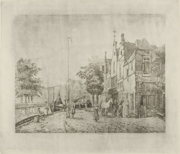 Reinier Vinkeles created this print of the Rapenburg in 1807. It captures a moment of recovery, where the linear precision etches a scene of both devastation and resilience into stark detail. Note how Vinkeles uses the sharp lines to structure the composition.The eye is drawn from the foreground figures observing the scene, over the canal, and into the depth of the damaged cityscape. The formal arrangement is divided into distinct planes, each meticulously rendered to convey a sense of order amidst chaos. The buildings on the left are in the process of being repaired; scaffolds forming a lattice against the sky. This structured approach to depicting the disaster underscores a narrative of human intervention. By carefully balancing elements of destruction with signs of reconstruction, Vinkeles offers a commentary on the capacity to rebuild and restore.