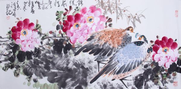 Curator: Lin Fengmian's *Untitled* presents a scene rendered with watercolor, depicting a group of birds perched amidst foliage. It’s a composition that deftly balances figuration and aspects of expressionism. What strikes you initially? Editor: Immediately, I'm struck by its quiet intensity. There’s a solemnity in the dark forms of the birds against the softly blurred, colorful background. The composition is both calming and somewhat melancholic. Curator: Absolutely. I think situating this piece within the broader context of Lin’s life – particularly the political and social upheavals he navigated – provides some rich insight. He merged traditional Chinese ink techniques with Western modernist styles to create a very distinct personal visual language. Editor: How does that influence our understanding of a relatively straightforward image like birds on a branch? Are there implied tensions between cultures, or societal metaphors, perhaps? Curator: It’s certainly present. The blend itself represents a negotiation of identity, navigating cultural expectations while innovating a unique perspective. I read this grouping of birds, in their apparent stillness, as a commentary on observation and bearing witness to the changes around them. Their collective presence is its own kind of power. Editor: From my perspective, examining its reception historically, one sees a dialogue opening between his artistic vision and the dominant political forces, a constant negotiation. How did contemporary galleries frame his narrative, and how did he navigate those public expectations and constraints? Curator: The art world responded unevenly. His synthesis of styles was sometimes met with confusion, sometimes with celebration. The institutional embrace of his art underscores shifting cultural values. The seeming naivety could easily be misconstrued. Editor: It reminds us how fluid cultural appreciation can be. I think this piece, viewed now, prompts crucial reflections about belonging, bearing witness and resilience. It transcends simplistic appreciation, touching on something deeper about art's enduring ability to carry these intricate discussions through time. Curator: Precisely. *Untitled*, with its delicate application of watercolors, offers an invitation to reflect on identity, societal change, and how individuals navigate shifting landscapes. It lingers in the space between serenity and subtle unease.