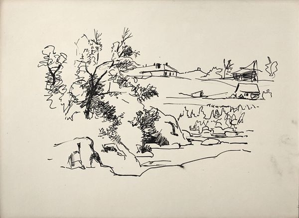 Jan Brandes made this sketch of a town or village scene using pen and brown ink on paper sometime in the late 18th century. The brisk, efficient strokes of the pen give us a glimpse into Brandes’ world, a world built upon agriculture, trade, and religious faith. The drawing depicts buildings, people, animals, and modes of transportation, all intertwined in a vibrant, bustling community. The materiality of pen and ink is evident in the immediacy and directness of the lines, reflecting the artist’s hand and mind at work. The sketch invites us to imagine the sounds and smells of this vibrant community, offering a snapshot of a specific time and place. Ultimately, this sketch serves as a reminder of the importance of craft and materiality in understanding the social and cultural significance of art. It challenges us to look beyond the surface and consider the ways in which art reflects and shapes our world, blurring the boundaries between the fine arts and everyday life.