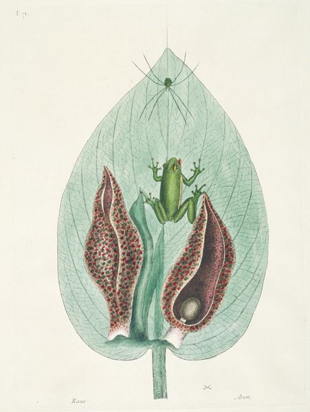 Editor: So, this vibrant watercolour illustration, Coryanthes bungerothi, is by Jean Jules Linden, and it seems to date from around 1885 to 1906. It's quite striking with the bold colors of the orchid contrasted against the almost technical detail of the botanical rendering. What do you see in this piece in terms of its broader artistic or cultural context? Curator: What jumps out is the convergence of scientific documentation and aesthetic presentation. During this period, botanical illustration wasn’t just about accuracy; it was also about showcasing the exotic flora being "discovered" and, to some extent, claimed by European powers. Consider the rise of natural history museums and botanical gardens—how does this image play into that broader trend of colonial science and display? Editor: So it’s less a pure celebration of nature and more…an assertion of dominance, almost? I hadn't considered the colonial aspect so directly. Curator: Precisely! Think about who commissioned these kinds of illustrations, who had access to them, and what purpose they served beyond pure scientific study. It fed a public fascination, a desire to possess a visual representation of the exotic and rare. How does the composition itself – the isolation of the plant, its almost hyper-realistic rendering – contribute to this feeling? Editor: I guess the close-up perspective makes it feel… dissected, analyzed, even appropriated. Also, the very controlled use of watercolor enhances this clinical approach. Do you think the detailed style contributes to the perception of scientific authenticity? Curator: Absolutely. The realism and precise detail lent an air of authority and objectivity, masking the inherent biases present in the act of representation itself. The "academic art" style served to validate the “scientific” observation of the era. It made the exotic accessible – and in a way, possessable – to a European audience. Editor: This definitely shifts my understanding of the piece. It’s more than just a pretty flower painting; it’s entangled with politics of knowledge and representation during the colonial era. Curator: Exactly. The power of images is rarely neutral. Reflecting on these nuances allows us to question how historical dynamics affect even seemingly benign representations.