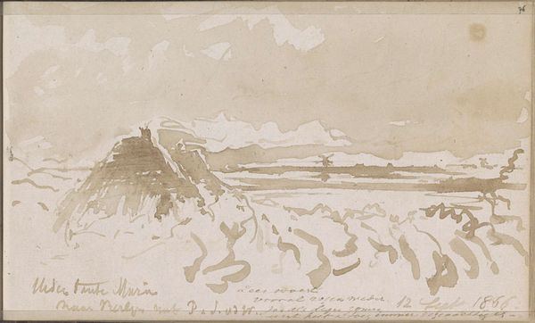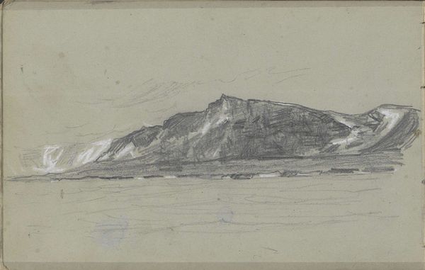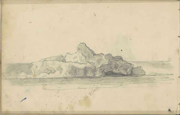 Curator: Welcome. Here we have Louis Apol's "Iceberg in the Barents Sea," a pencil drawing from 1880. Editor: Strikingly bleak. There's something deeply solitary and melancholic about this stark iceberg rendered with such precision. Curator: Indeed. Apol was known for his winter landscapes, capturing the subtle nuances of light and atmosphere in the Dutch tradition. But this particular work focuses on a more remote and unforgiving locale. One can almost feel the chill emanating from the pencil on paper. I find myself wondering about his artistic process in creating this piece. Editor: It's more than just the cold; it is a comment on our own precarity. An iceberg is a temporary formation. It is a potent reminder of nature’s indifference and the temporary state of matter—echoing contemporary discussions about climate change and environmental fragility. This iceberg will eventually melt, feeding back into the system... Curator: Certainly. If we look closely at the paper itself, we can begin to unpack how Apol achieved this effect. The varying degrees of pressure applied with the pencil create texture. From the light, almost ethereal strokes suggesting snowdrifts atop the berg, to the denser, shadowed areas which evoke the cold, wet stone. This drawing becomes an exercise in contrasting touch and tone to create both emotional depth and a stark sense of realism. Editor: And beyond the artistic application, this brings to mind a whole colonial discourse; in the nineteenth century, exploring the arctic north served economic and political interests by establishing dominance over othered, “unknown” regions. How much of Apol’s drawing comes down to merely an artistic or creative act, and how much is instead tied to this historic narrative of domination, environmental imposition, and colonial exploitation? Curator: A potent reminder that art, even landscape art, never exists in a vacuum. This drawing is a testament to Apol's skillful manipulation of materials. Editor: And also a window into the complex relationships between art, society, and power. Thanks for pointing out the layers.