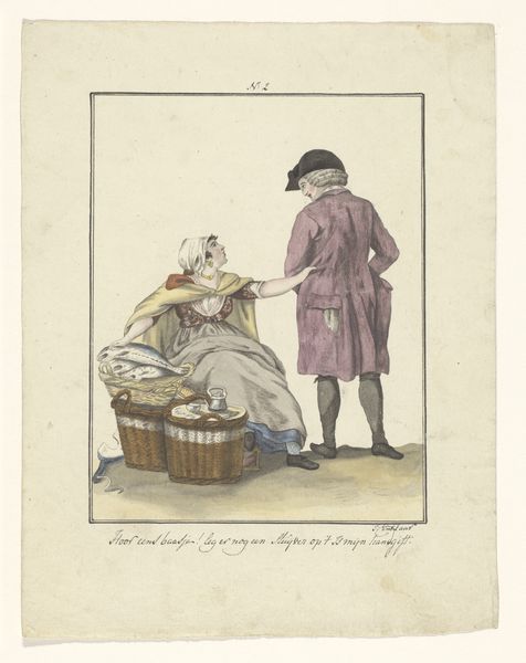 Jakob Fürchtegott Dielmann created "Zwei Mädchen und ein Bursche am Brunnen" using watercolour and ink. This tableau immerses us in an intimate moment by a well, dominated by the interplay of blues and browns. Observe how Dielmann masterfully orchestrates a delicate balance, positioning the figures in a triangular composition that stabilizes the scene, yet subtly hints at underlying tensions. The cool blues of the garments create a visual harmony, while the earthiness of the well grounds the piece, evoking a sense of place and labor. Consider the semiotic implications of the well itself. It serves not only as a functional element, but also a cultural symbol, perhaps reflecting ideas of community and daily life. Dielmann invites us to decipher the multiple layers of meaning. This tension between formal elements and symbolic content stimulates critical thinking about art's role in reflecting and shaping social values.