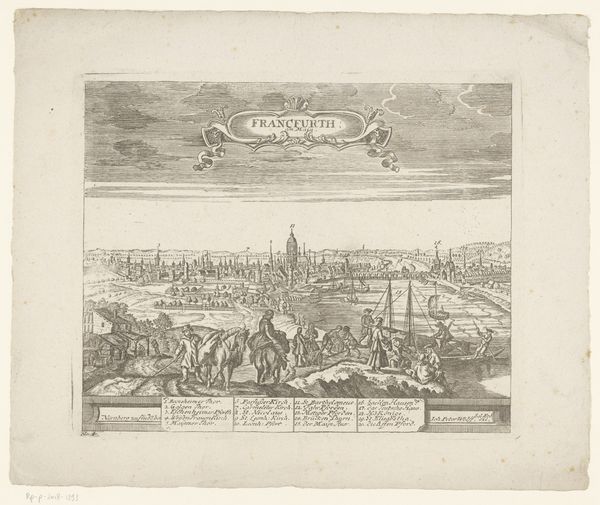 Johann Christoph Dehne's 'View of Dresden' is a detailed print, offering us a snapshot of the city, likely made to be sold as a souvenir to visitors. Prints like this one played a crucial role in shaping perceptions of urban spaces during this time. Look closely and you'll notice how the composition emphasizes the city's economic activity, with boats navigating the river, and figures transporting goods along the banks. This wasn't just a pretty picture, but a carefully constructed image designed to project an image of prosperity and order. Made in the Baroque era, it reflects the period's interest in detailed representation, but also in presenting a particular vision of society. To understand this print fully, we might delve into the economic history of Dresden, exploring the guilds and trade networks that shaped the city's identity. We can also see how this image might be playing into the city's own self-image. After all, art is always rooted in specific social and institutional contexts.