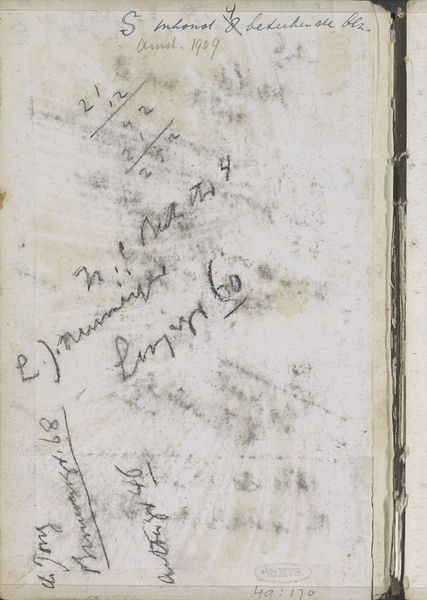Editor: This is “Abklatsch van de tekeningen en annotaties op pagina 79” by Willem Witsen, created sometime between 1887 and 1891. It’s a drawing in ink and pencil on paper. Honestly, it looks like a random page torn from a notebook! What do you see in this piece? Curator: Indeed, on the surface, it seems quite unassuming. But let’s consider its socio-historical context. Witsen was part of a vibrant artistic community in late 19th-century Amsterdam, deeply engaged in representing modern life and landscapes. What purpose did sketchbooks serve at the time? Were they purely for personal use, or something more? Editor: I guess I assumed they were just for private use – like, preliminary sketches or private thoughts? Curator: Precisely. But increasingly, the "private" sketches of artists like Witsen entered the public sphere. Galleries began to display what was previously considered informal studies, elevating the sketchbook page to an object of artistic merit. So this 'random' page becomes a statement about the creative process. It reflects how artistic value could be constructed and institutionalized around even the most unassuming of images. Do you see evidence of that shift in this piece? Editor: I see… knowing that it was deemed worthy of preservation and display changes everything. Suddenly the apparent randomness becomes deliberate. Maybe it is showing the artist’s thought process? It feels like a glimpse behind the scenes. Curator: Exactly. What does it tell us about shifting public perception of art and artistic genius if a casual sketch, seemingly untouched by deliberate intention, can be put in the Rijksmuseum? Editor: That is thought provoking. It sounds like something quite simple really opened my eyes to how social context affects art. Curator: Indeed. The piece invites us to reconsider art’s place in our society and who gets to define its value.