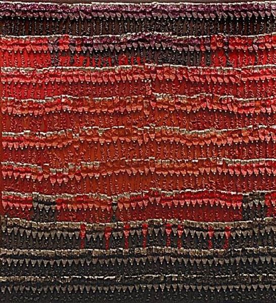 Arman created “Crusaders”, held in a private collection, using an accumulation of everyday objects. Look closely; its composition features orderly rows of metallic, perhaps chrome-plated, knife handles, each punctuated with dark accents near their ends. This repetitive arrangement creates a visual rhythm, a play between order and slight variation. Arman's accumulation art reflects a fascination with seriality and the readymade, echoing the concerns of his Nouveau Réalisme contemporaries. The formal arrangement into wave-like forms contrasts with the violent connotations of the title, “Crusaders”, which unsettles our interpretation; are we observing a critique of collective action, or an aestheticization of conflict? Consider how the physicality of the objects and their careful arrangement challenge fixed meanings. This work invites us to contemplate the relationship between material culture, aesthetic form, and ideological content, and how these can be used to question historical narratives. Ultimately, "Crusaders" functions not just as an aesthetic object but as a complex cultural signifier, open to continuous interpretation.