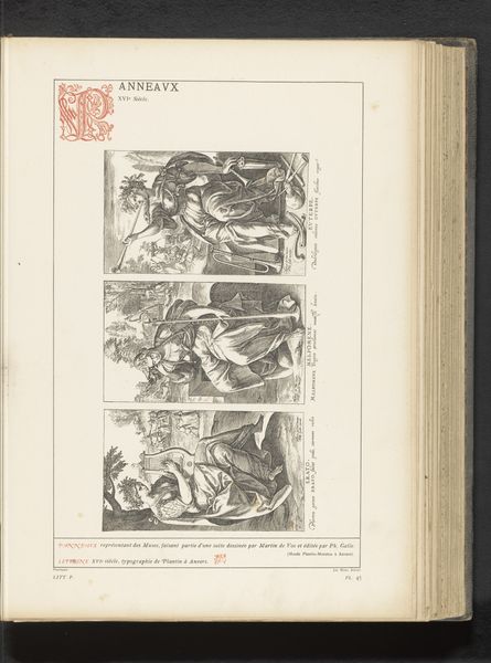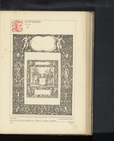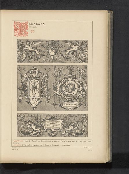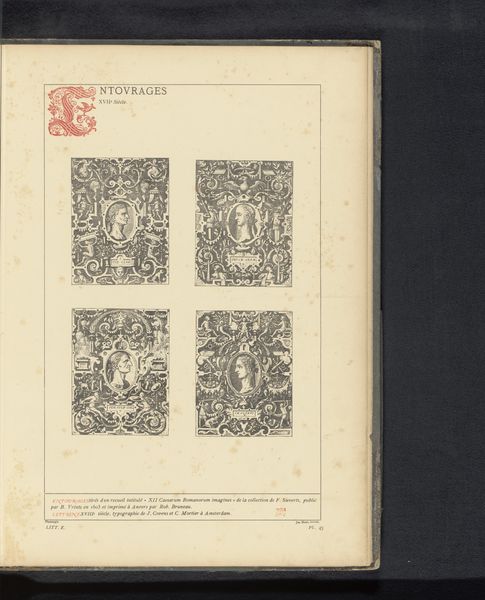Curator: This artwork presents a reproduction of an engraving dating from before 1880, depicting "The Death of Mary." It's attributed to Johannes Sadeler, after Maerten de Vos. Editor: The dense, dark lines and compact composition immediately strike me. It feels intensely somber and detailed. I am curious about its social purpose. Curator: From a formal perspective, notice how Sadeler utilizes contrasting tones to create depth within a relatively flat plane. The almost overwhelming ornamentation of floral motifs framing the scene directs the eye toward the central figures clustered around the Virgin. The use of line and form is meant to emphasize certain figures over others, giving more detail and light to those considered central, but it may distract viewers from fully engaging with secondary figures or from observing the details around the Virgin. Editor: I agree, the emphasis creates an iconic focal point, but I’m more interested in the material processes involved in creating this reproduction. Engravings required meticulous skill, and reproducing such a piece would have been a labor-intensive endeavor, reflective of both technical expertise and broader economic networks within the printing industry at that time. What would be its availability to audiences, given the resources involved in creating it? What was the status of Sadeler himself? Curator: Certainly, there are layers to unpack in how this reproduction served a didactic purpose, and these processes matter as well. Sadeler's mastery of the burin is clear in the way the light seems to emanate from the scene—there is a subtle radiance at work—and consider too, that in an age before photographic reproduction, prints such as this helped circulate visual ideas related to spirituality. There is great power in that replicability of religious scenes. Editor: Yes, and that very circulation has social and political significance. Were they reaching only elite patrons? I find the material conditions and means of distributing these works just as compelling as its stylistic qualities and iconographic impact. What class did the laborers come from? How were they trained? The art and social value lie inextricably within these historical details of its creation. Curator: I acknowledge the value of material concerns; but in studying the history of this engraving’s forms, it is tempting to further investigate its aesthetic conversation between reproduction and original works. There is beauty to be found, too, in exploring the language of visual representation. Editor: Perhaps, and regardless of one's personal values, one has to reflect upon the cultural weight of materials to get the whole picture. Curator: Precisely, both analyses allow us new perspective on historical printmaking, even from a reproduction as seemingly straightforward as this one.