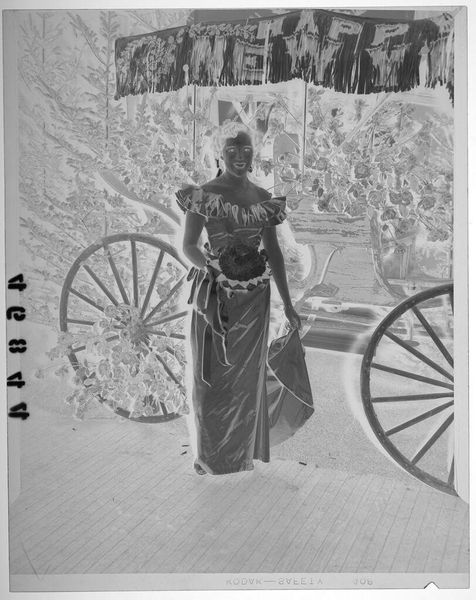 Editor: Here we have an Untitled photograph by Lucian and Mary Brown, showing a woman with two dogs. I'm really drawn to the intimacy of it, and how the inverted colours create such a strange, dreamy atmosphere. What do you see in this piece? Curator: Ah, yes, it’s like a memory fading in and out. The two dogs, almost like twins, held so delicately. The inverted colours feel like a secret language, hinting at a world turned upside down. What do you think the artists were trying to capture? Editor: Perhaps a moment of pure, simple connection? It certainly makes you wonder about their relationship. Curator: Exactly! It’s a quiet story, whispered in light and shadow. Editor: I'll never look at a black and white photo the same way again!