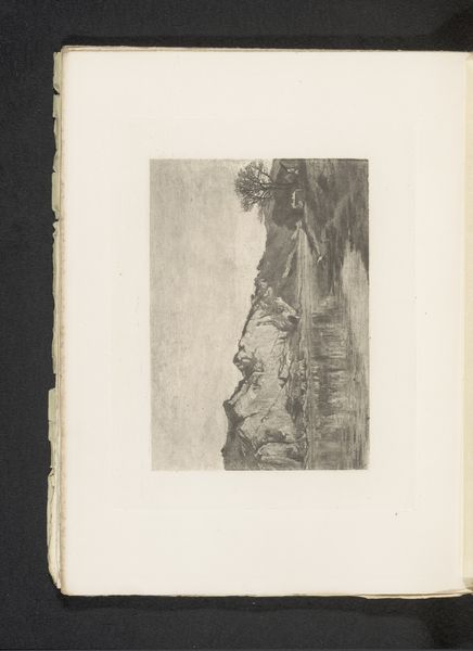 Curator: Before us, we have "Zittende vrouw met een boek," or "Seated Woman with a Book," an etching and print by Félicien Rops from 1879, now held at the Rijksmuseum. What are your initial impressions? Editor: Well, immediately, I get a sense of quietude, almost a somber stillness. It’s that sort of drawing that makes you want to whisper. The shading and light give her an almost spectral quality, doesn't it? Curator: It does indeed. Rops was, of course, operating within the Symbolist movement. The muted tones and delicate lines, created using etching techniques, allow for a certain ambiguity and focus on inner psychological states. It is figuration with a twist of something hidden, maybe not visible. Editor: Exactly! I love how the sketchiness adds to the mystery. It's like catching a glimpse of her in a fleeting moment. The hat and the high-necked dress really set a scene of time… And that book! It feels so intimate. What’s she reading? What's she thinking? We want to be transported in the time of her, imagining that! Curator: The book is pivotal. During this period, the act of reading was being portrayed increasingly as a space of female self-possession and intellectual independence. Rops was well known for a career spent portraying the complexities of female identity within the social landscape of the late 19th century. Editor: It's almost as if we're intruding on a private moment, and it really touches your imagination. A lovely moment frozen in ink, so fragile, you almost expect it to dissolve if you look too closely! Curator: Precisely. Rops captured a moment ripe with potential narratives, shaped by the socio-cultural expectations and possibilities of the era. A wonderful confluence of personal reflection and historical context. Editor: For me, it just emphasizes the beauty of being alone with a good book. Always a great place to dwell.