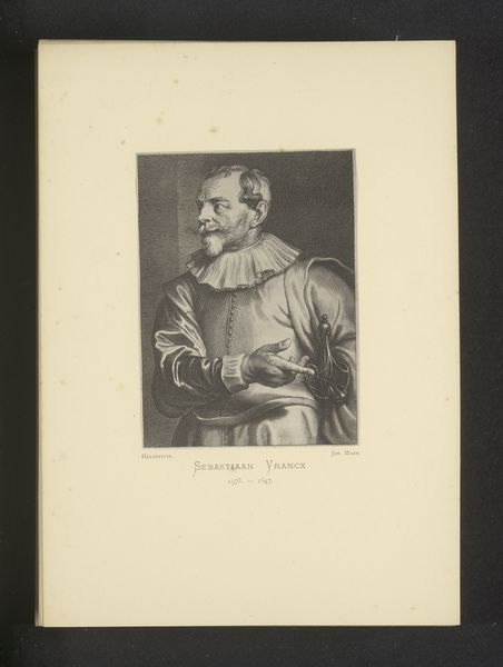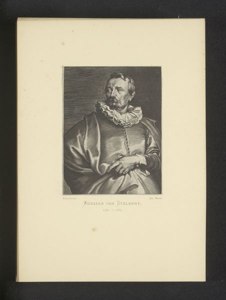 This is Joseph Maes' reproduction of a portrait of Lucas van Uden by Lucas Vorsterman I, created as a print. Maes, born in the mid-19th century, lived in a time of significant shifts in art, moving from Romanticism towards Realism and early Modernism. Reproductive prints like this one played a crucial role in disseminating images of art to a wider audience, democratizing access to culture. Yet, these prints also raise questions about originality, authorship, and the value placed on artistic labor. As we consider the image, think about how identities are constructed and represented through art. Van Uden, the subject, and Vorsterman, the original artist, are both filtered through Maes's interpretation. It becomes a layered narrative about artistic legacy and the ongoing negotiation of identity across time. Consider how the act of reproduction alters our understanding of art and its relationship to society. It’s a reflection on how we consume and share images, inviting you to consider the emotional weight of artistic interpretation.