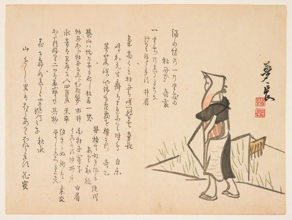 This woodblock print of an old man with a sparrow was created by Takezawa Saihō. We see an elderly man with a cane, and next to him, a sparrow rendered almost as a human figure wearing a kimono. Consider the symbolism of the sparrow. In many cultures, the sparrow represents diligence, simplicity, and joy. In East Asian art, sparrows often symbolize the arrival of spring and are seen as bringers of good fortune. Think of the ever-present motif of birds in flight across different cultures and eras – from ancient Egyptian hieroglyphs to the doves of peace in modern art. Here, the artist infuses this traditional symbol with new emotional depth. The old man's weary posture contrasts with the sparrow’s vibrant presence. It may evoke a collective memory of nature’s resilience, offering a psychological connection that is deeply embedded in our shared subconscious. In essence, this artwork serves as a reminder of the continuous exchange of symbols, how they resurface and evolve, enriching our understanding and engaging us in a cyclical progression through history.