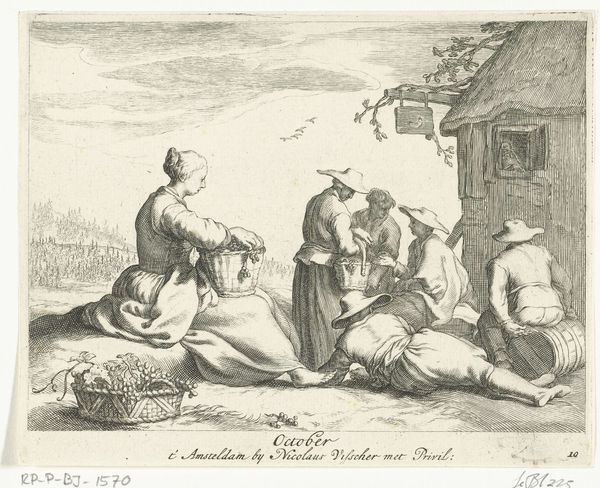 "Twee Boerinnen" was created by Cornelis Bloemaert, sometime in the 17th century, using engraving techniques. The image is defined by line work. Bloemaert would have used a tool called a burin to carve lines into a copper plate. This is a laborious process, demanding great skill. The depth and density of the lines determine the areas of light and shadow we see. The very nature of the print-making process—requiring a matrix from which identical images can be multiplied—speaks to the rise of mercantile capitalism in 17th-century Europe. Note how this is related to the image it depicts. These are women of the laboring class. We see in this artwork not only the final result, but also the many hours of labor it represents, both in its making and in its subject. Paying attention to these dimensions of material and making allows us to bridge the gap between artistic creation and the broader sphere of social life.