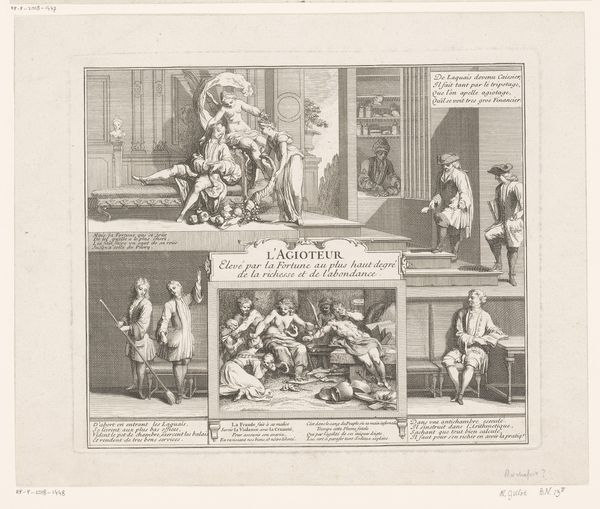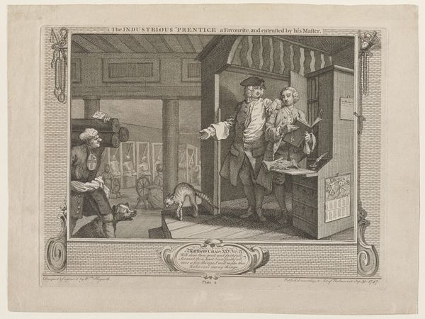 Editor: Here we have "She gathers the fairest flower", or "Il più bel fior ne coglie," an engraving by Carlo Gregori, dating back to the mid-18th century. I'm struck by its intricate detail and the almost playful depiction of labor. These cherubic figures seem so busy! What story do you think this print is telling? Curator: Oh, I love that you call it playful! To me, this is a whimsical allegory, perhaps depicting the distillation of something precious. The putti, these little cherubs, are clearly engaged in a process, turning a mill, gathering what looks like grain... and there's a sense of organized chaos to it all. Look at the contrast between their delicate forms and the industrial nature of the equipment. Do you think they're happy laborers or forced ones? Editor: That's a fascinating point. Forced labor hadn't occurred to me with the putti all being angelic and so carefree. I guess it does prompt questions about exploitation, even in an allegorical context. What’s the flower, or finest flower, they’re gathering in your opinion? Curator: Ah, the million-dollar question! Perhaps it's the distillation of youthful beauty, or maybe even an allegorical nod to the creation of perfume. These engravers loved encoding messages! Perhaps the most intriguing is asking yourself, if you had to assign labor to emotions or characteristics, which would you assign where? Editor: I see, like matching tasks to traits – that's an interesting way to consider it. Now I feel like I need to spend some more time just letting my imagination wander through all those details. Thanks! Curator: My pleasure. And you know, sometimes the not knowing is precisely where the richest understanding of a work truly lies!