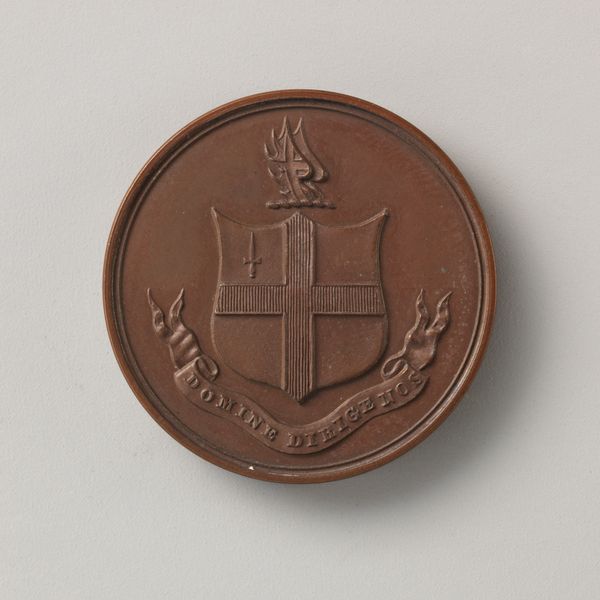 Editor: This is the "Medal in Memory of Lieutenant William Burrows" made sometime between 1800 and 1830 by Moritz Fürst. It appears to be made of bronze, a surprisingly common artistic material. What's striking is how it elevates a military figure through what seems to be mass production, and it begs the question, what's the story here? What can you tell me about this work? Curator: Look at the strategic use of bronze: an inexpensive yet durable material, ideally suited to produce many copies honoring this Lieutenant. This object becomes a symbol of both individual heroism and state power, distributed widely. Notice, too, the classical urn; it speaks to the neoclassical style that dominated the time. How does that play into the intended consumption of this medal? Editor: So, the choice of bronze, usually reserved for more... high-end art, helps spread a political message and elevates Lieutenant Burrows within a popular, accessible format. Does that contradict traditional notions of art being unique and precious? Curator: Exactly! The very act of reproduction democratizes the commemorative process. It suggests a shift from elite patronage to a broader, more public form of memorialization. The medal itself becomes a commodity in a way, consumed and circulated as a token of patriotic sentiment. How might the context of its production and consumption influenced its style, do you think? Editor: I see it now – the controlled style aligns with a specific kind of public grief and national pride. Thanks, it's fascinating how materials and distribution become such central parts of understanding the meaning of a piece like this. Curator: Precisely. By considering its material existence and journey, we uncover the social forces that shaped not just its creation but also its lasting impact. It certainly makes me rethink "traditional" art boundaries.