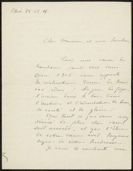 This is a letter, ‘Brief aan August Allebé,’ created in 1895 by Ferdinand Leenhoff, its stark visual experience lies in the contrast between the cream paper and the dark ink of the handwriting. The script cascades down the page, a series of looping forms contained within the rigid structure of the letter format. The letter’s visual hierarchy guides our eye, from the printed hotel address at the top left to the fluid signature at the bottom right. Leenhoff’s handwriting, with its varying pressure and rhythm, functions as a direct expression of thought. This interplay between form and expression raises questions about the nature of communication. The letter exists as both a functional object and an aesthetic artifact. Its structure highlights a tension between its practical purpose and its potential for artistic interpretation. It invites us to consider how we assign value and meaning to everyday objects. The letter becomes a site of ongoing interpretation, shifting with each reading.