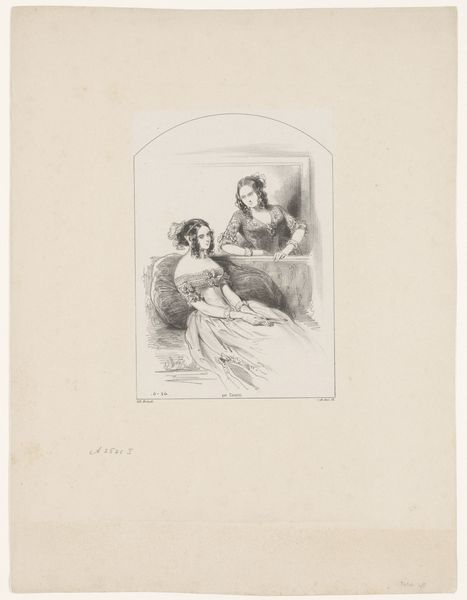 Paul Gavarni created this lithograph titled 'Masks and faces: I have been slandered,' capturing a charged moment between two figures. The woman's defensive posture and the man's tense stance evoke themes of betrayal and accusation, reflecting a common narrative of social intrigue. The motif of the mask, though not physically present, is central here. The title itself suggests hidden identities and false appearances. The man, with his back turned, is a shadowy figure. This reminds us of commedia dell’arte, where characters wear literal masks to embody stock roles. Here, the mask is psychological. Consider how these themes of deception echo through history, from ancient Greek tragedies to Shakespearean plays. The emotional tension is palpable, engaging viewers in a subconscious dance of suspicion and empathy. This interplay between visibility and concealment speaks to our inherent fascination with the hidden aspects of human nature.
