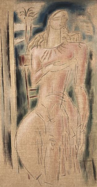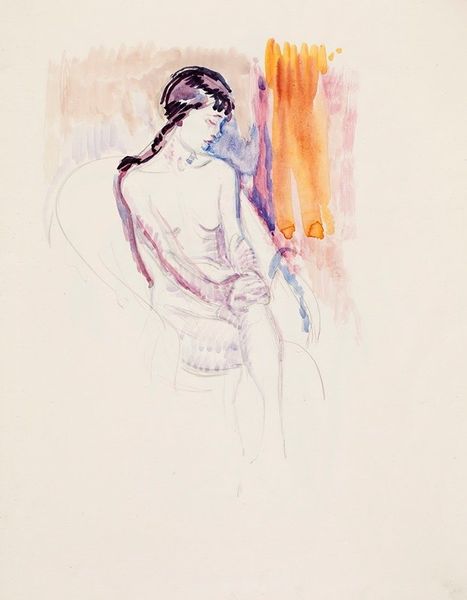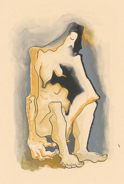 Editor: This is Auguste Rodin’s "Minerva," a mixed-media piece employing pencil, watercolor and other materials. The colors are muted, and it gives the impression of something ancient, unearthed. What draws your attention when you look at this drawing? Curator: Immediately, I’m struck by how Rodin uses this image to engage with ideas about female representation within academic art traditions. Minerva, the Roman goddess of wisdom and strategic warfare, was often depicted in painting and sculpture as embodying both intellectual and physical strength, attributes conventionally reserved for men. This depiction, however, challenges that... what do you think? Editor: Well, she definitely seems less like a powerful goddess and more like…a fleeting impression. Vulnerable, even. Curator: Exactly. By using such fluid lines and muted colors, Rodin potentially questions the established academic portrayals of women and perhaps, societal expectations of women during his time. It pushes us to think about how power is depicted and who gets to decide those depictions. Does this resonate with how you interpret contemporary art and media? Editor: It definitely gives me a lot to think about. The way the medium itself almost feels unfinished reflects the breaking down of those established ideas about what women should be. Curator: It's fascinating how Rodin uses this seemingly unfinished quality to provoke dialogue. Looking at this "Minerva" challenges our pre-conceived notions and prompts reflection. Editor: I'll definitely look at Rodin's works differently from now on. Seeing art as participating in social discourse gives a new dimension to it.