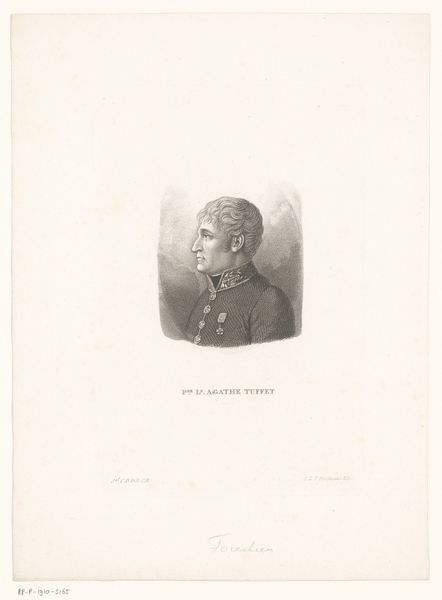 Curator: Take a look at this engraving by Ambroise Tardieu, titled "Portret van Ludovico Ariosto", created sometime between 1820 and 1828. Editor: It has a solemn and classically inspired feel. The portrait itself is set within an oval, lending a formal air to the subject. The monochromatic palette adds to that sense of gravity. Curator: This is an engraving, a type of print. If you get close, you can observe the tiny lines carved into a metal plate and filled with ink that eventually make the portrait itself, a material intensive labor for disseminating images at the time. We're talking about a skilled artisan carefully etching away metal to capture Ariosto's likeness, and replicating that labor through printing multiple times. Editor: Exactly. The way light and shadow define his features within such a precise form; see how it almost gives a sense of movement while maintaining such controlled contours and form. I'm drawn to the deliberate contrast. And I find that laurel wreath and detailed collar interesting focal points. Curator: Indeed, that choice of the wreath immediately establishes the context and that connects him to the social milieu of intellectual production. The laurel symbolizes his achievement, so its representation makes us think of his cultural importance and status at that historical moment. Editor: And he's shown in profile, not quite engaging with the viewer, maintaining that distant heroic feel—very much fitting of the Neoclassical ideals it invokes through symmetry and clear depiction. But then, those soft, intricate details of the lace at his neck offer some textural delight and depth and serve as great contrast with his stark face. Curator: It's a visual record of status intertwined with material constraints and social access to printing techniques; it invites reflections on the very material basis for remembering figures and crafting legacies in 19th-century Europe. Editor: Absolutely, a testament to how close formal elements and materiality meet social context to forge aesthetic impressions and interpretations. Curator: A fitting final note indeed!