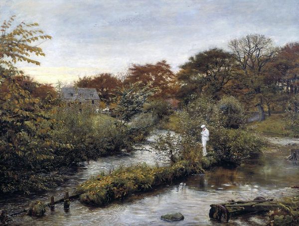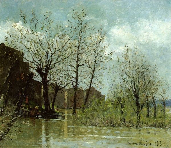 Maxime Maufra painted 'The Auray River' with oil on canvas to render a serene landscape where water and foliage intertwine. The river, a classical symbol, acts here as a mirror reflecting not just the physical world, but also our inner selves. Rivers have long been depicted as life-giving forces, yet also as boundaries and passages into the unknown, seen in ancient mythologies where rivers like the Styx separate worlds. In this painting, the river's gentle flow invites contemplation, a visual metaphor for the passage of time and the continuous flux of existence. The surrounding trees, bare yet budding, evoke themes of rebirth and the cyclical nature of life, resonating with ancient tree worship and the symbolic tree of life found in various cultures. This artwork, beyond its aesthetic appeal, connects us to a deeper, collective memory, stirring a subconscious understanding of nature's profound influence on the human spirit.