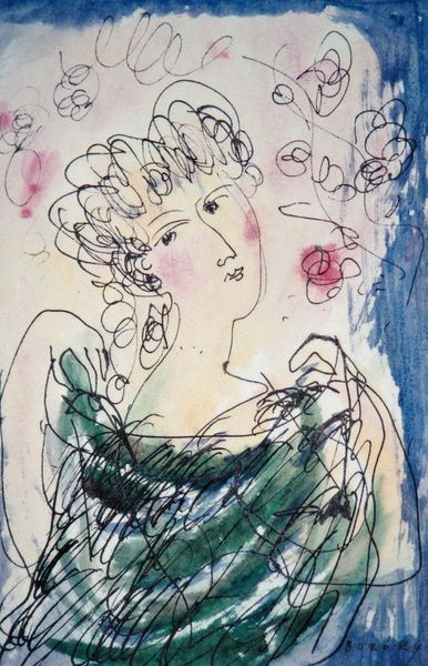 Curator: This is an Untitled portrait by Ligia Macovei, rendered with oil paint in an impasto technique. Editor: Immediately striking! The thick layering of paint almost feels sculptural. The brushwork really evokes a sense of fleeting expression; the portrait almost seems on the verge of dissolving before our eyes. Curator: Let's consider that impasto application – the visible marks of the artist’s hand. The materiality is so upfront. It’s hard to separate the figure depicted from the substance of the painting itself, and I think the artist asks that from us. Consider the consumption of art here – she lays it bare for us as labor. Editor: Absolutely. And looking closer, there’s this interesting tension between traditional portraiture and the Neo-Expressionist style—the deconstruction of form mirrors societal shifts. This subject is viewed in isolation and almost abstraction. What narratives of the female subject can we weave? How does class enter this discourse as she dons this decorative hat? Curator: Well, think about what’s necessary to even have access to such materials. Oil paints were certainly more difficult to acquire and mix just a couple hundred years ago. The layers themselves become a symbol of time, skill, and even monetary access, and she draws our eye to the fact they are indeed “laid” here, with purpose, mark by mark. Editor: And within Neo-Expressionism, consider the rejection of Minimalism. It became this reclamation of emotional intensity and a focus on subjective experience, often reacting against dominant, cooler art trends. It's as if the artist is consciously pushing back against systems that devalue raw, individual expression, perhaps especially by women. Curator: A key part of understanding the movement and artist indeed! And, personally, that push towards intense material handling and almost violent re-construction here becomes part of a compelling and visceral experience for the viewer. Editor: It invites us to deconstruct not just the image, but the broader societal narratives it might be reflecting, or even resisting. It also makes us confront questions around power and representation. What did such adornment signify at that point in history? Curator: Agreed, what did that level of visible expenditure mean for the figure, as well as artist? It’s really thought-provoking, indeed. Editor: Absolutely, it leaves me pondering the dialogue between artistic process and social commentary, and where Macovei’s hand sits in that intersection.
