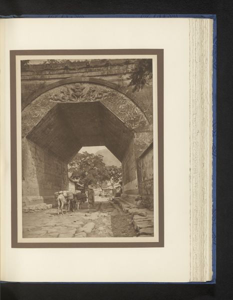 Donald Mennie made this photograph, ‘Gezicht op twee poorten te Peking,’ and it's a world of sepia tones, like a memory half-faded, half-there. The composition is striking, drawing you into the depths of the image through those layered arches. Look at how the light plays on the rough textures of the walls. You can almost feel the grit and history embedded in the stone. There’s this small figure, maybe a merchant, walking with a donkey, that adds a sense of scale. The scene feels both intimate and expansive, like a stage where daily life unfolds. It reminds me a bit of some of the early street photography, where the everyday becomes monumental through the framing and the focus on texture. The picture breathes with the dust and heat of the city, a moment captured and held still. It has a unique vision, transforming the familiar into something mysterious and deeply felt.