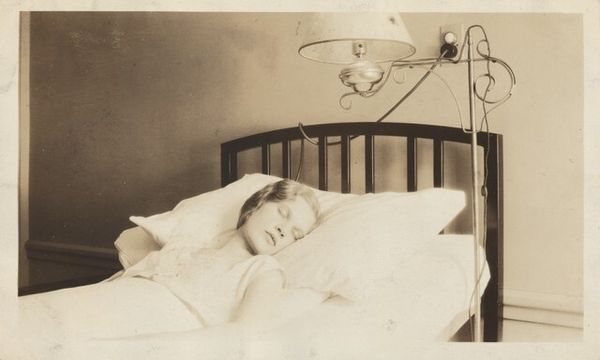 Here, we have an anonymous photograph, made with light and silver salts, portraying a man with a mustache sleeping. Isn’t it interesting how a picture, especially an old one like this, can feel like a little stage set? The way the light falls across the bedsheets, almost blurring them into the wallpaper, is like a painter carefully layering tones. You can almost smell the musty air of a forgotten room. Look at the door, slightly ajar, with its lace curtain. It is as if the photographer wanted to give us access to a private moment, a glimpse into a dream. The man's mustache is the star of the show, though, isn't it? That dark stripe against the pale pillow. It reminds me a bit of some of the early surrealists like Magritte, who were masters of taking the ordinary and making it strange, or perhaps even a little absurd. This is art as an ongoing conversation with the past, a dance between what is seen and what is imagined.