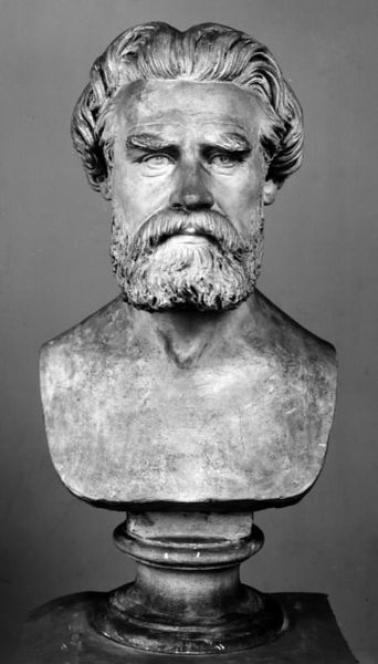Carved by H.W. Bissen, this sculpture portrays Carl Berling, a printer and chamberlain, rendered in a classical style. The draped fabric around Berling's shoulders is not merely decorative; it echoes the ancient Roman toga, a symbol of citizenship and civic duty. This motif of draped fabric dates back to antiquity, seen in countless sculptures of emperors and philosophers, each subtly conveying power, wisdom, and authority. The very act of draping fabric is fraught with meaning, and has resurfaced throughout the ages, adorning religious figures, and Renaissance noblemen, each time adapting to new cultural contexts. Consider the emotional weight of this garment, how it has become embedded in our collective memory and subconscious. The fabric, as it cascades and folds, presents a silent yet powerful visual language that engages us on a subconscious level, triggering deep-seated associations with leadership, tradition, and the passage of time. The motifs, in their cyclical progression, resurface, evolve, and take on new meanings.
