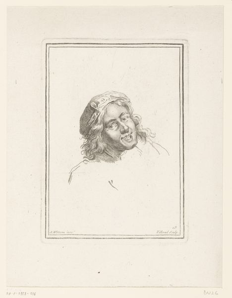 Francesco Novelli’s "Self-portrait leaning on a stone sill," is an etching measuring 215 by 169 millimeters. The composition is dominated by the artist's figure, closely framed, resting on a textured stone sill. Novelli employs a dense network of fine lines to build form and suggest light, evoking a contemplative mood. The textured hat and cascading curls are rendered with an energetic scribble. The lines both define and dissolve the form, playing with presence and absence. Novelli seems to engage with the well known work of Rembrandt, not merely in subject, but more deeply in a philosophical consideration of the self. He uses line and tone to question fixed notions of identity. The self-portrait is less about likeness and more about the artist’s perception of the self. The etching technique, with its capacity for nuanced tonal gradations, mirrors the complexities of self-representation. The image remains a visual statement about the transient nature of identity, inviting ongoing reflection.