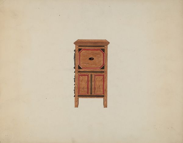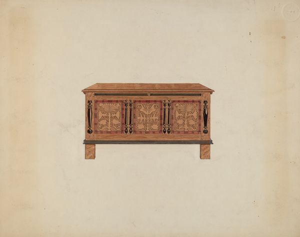 Martin Partyka made this drawing of a Guilford Press Cupboard at an unknown date and with unknown media. What strikes me most is the precision in the lines, like a blueprint but with an artist's hand. The wood grain is rendered so carefully, it feels almost tactile. The artist plays with light and shadow to give the cupboard a real sense of depth, but it's the intricate detailing that really captivates. Look at the tiny patterns carved into the wood, each one meticulously drawn. It reminds me of folk art, where every inch is filled with meaning and attention. This piece feels like a quiet conversation across time, echoing the craftsmanship of earlier eras. It reminds me a little of the meticulous detail in some of the Bauhaus renderings, but with a warmer, more personal touch. It celebrates the beauty of everyday objects and the endless possibilities of looking closely.