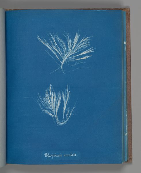 Anna Atkins created this cyanotype titled *Polysiphonia elongata*. Atkins lived during a time of rigid societal expectations, but her passion for science led her to explore beyond these gendered constraints. As one of the first women photographers, she documented various types of algae, combining her artistic eye with scientific precision. This photogram is part of her publication "British Algae: Cyanotype Impressions." The choice of cyanotype, with its distinctive blue hue, adds an ethereal quality to the image, while providing a more accessible and affordable method of illustration. By choosing to focus on the often-overlooked beauty of algae, Atkins directs our attention to the intricate patterns and delicate structures of the natural world, and the importance of looking closely. Ultimately, the image is a testament to the intersection of art, science, and the enduring quest for knowledge and understanding.