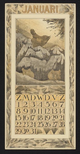 This calendar page for December, with robins, was made by Theo van Hoytema, and is now at the Rijksmuseum. You know, when you start pulling apart how things are made, how it’s put together, you can see it as a process. This lithograph gives me pause, partly due to its textures and the subtle color palette. It's mostly greens and browns, very wintry, but the surface looks almost like it's been scrubbed, or maybe even corroded somehow. Up close, the strokes aren't trying to be smooth. Look at the icicles – they're both solid and dissolving at the same time, which feels like time passing. The robins themselves, they're puffed up against the cold, looking pretty serene, like they're in on some secret about the season. It reminds me a little of the work of someone like Josef Albers. The piece is not about a static image, but an ongoing investigation, and an exploration of feeling. It's about how we see, and how seeing changes us.