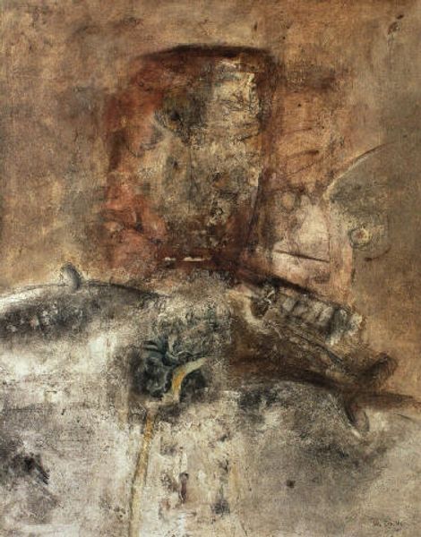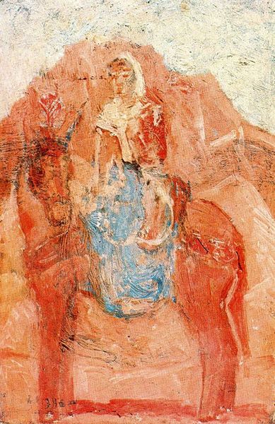 Lajos Gulacsy made this dreamlike painting, Chevalier aux Roses, with oil paint. The whole thing is bathed in a warm, reddish-orange light, like you're looking at it through rose-tinted glasses – literally! The paint seems applied in thin, hazy layers. There’s a real sense of the artist building up the image, almost like a memory surfacing. Look at the way the figures emerge from the ground – they're not sharply defined, but kind of float in and out of focus. Take that figure on the left; it's like a face in the clouds. Gulacsy is less interested in accurate representation, and more in the process of bringing the image into being. This reminds me of Odilon Redon, another artist who explored dreamscapes and inner visions. Both artists embraced the idea that art doesn't have to be literal; it can be a space for imagination and ambiguity. There’s no right or wrong way to feel about this piece, and that’s what makes it so interesting.