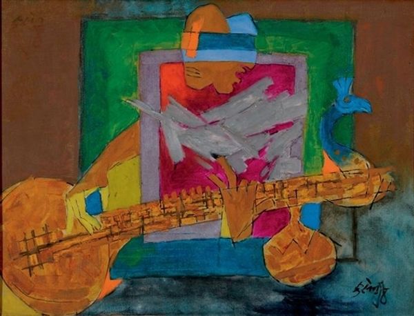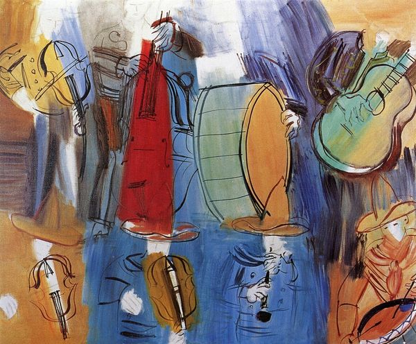 Bernard Buffet made this painting, Paravent: Les instruments de musique, in 1961. Buffet’s paintings often have a spiky directness, and this one is no exception. You can see it in the way the forms of the instruments are outlined; they are sharp and almost brutal, as if he’s trying to capture not just their shapes but their very essence. The paint isn’t dabbed on with any kind of subtlety, but rather applied in rough swipes and strokes. This isn't a painting about hiding the process; it's all about the process. Buffet's paintings feel raw, almost unfinished. Take the music sheets, for example. They are these stark white rectangles scrawled with dark lines. It's like he’s inviting us to hear the cacophony of sounds these instruments might make. Buffet’s work reminds me a little of Francis Bacon, who twisted the figure in similarly unsettling ways. Both artists seem to be searching for ways to represent the human condition, with all its anxiety and alienation, leaving us to sort through the noise and find our own melody.
