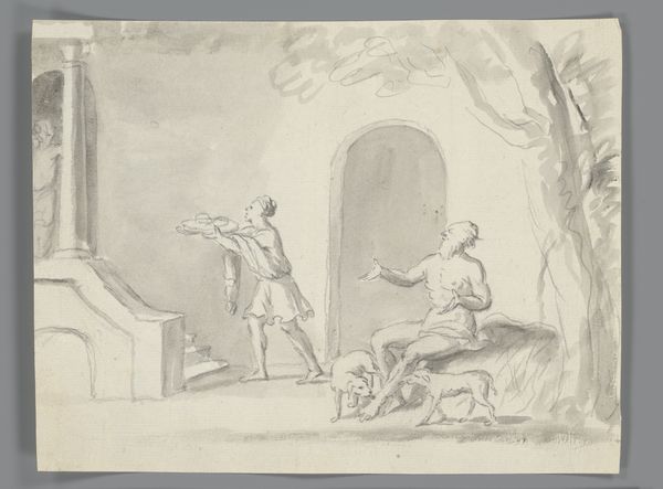 Matthijs Balen created this drawing, "Rome Supports Weary Painting," around 1723 using pen in gray ink and brush in gray wash over black chalk. The delicate balance of tones achieved through the layering of washes demonstrates considerable control of the medium. Notice the thin lines and how they bring the figures to life, and how the artist added depth and dimension through the contrast between light and shadow. The traditional materials and processes employed here elevate the subject matter. Balen underscores the idea that artists, like painting itself, may grow weary, requiring the support and patronage of institutions like Rome to thrive. This speaks to the broader social context of the time, when artistic success often depended on wealthy benefactors and the networks of power they controlled. This reminds us of the labor and skill involved in artmaking, and it underscores the importance of understanding these contexts to truly appreciate the work.
