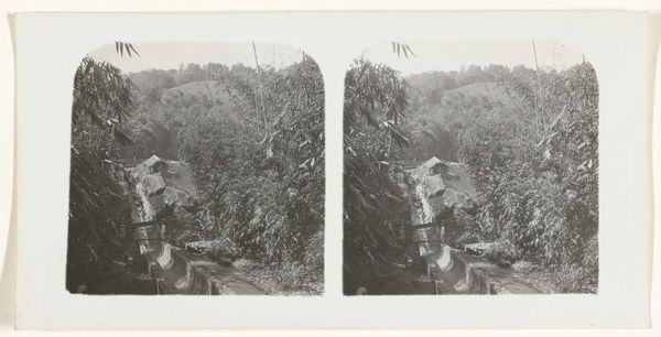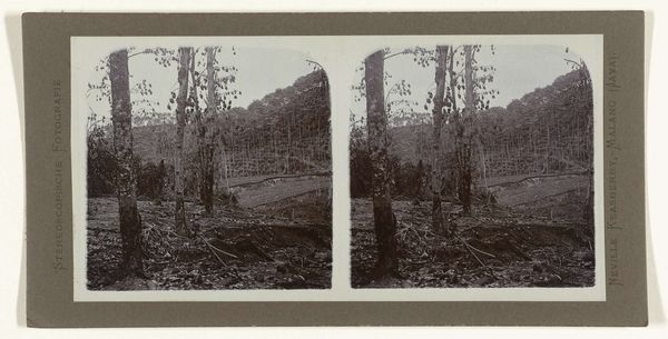 This is a stereoscopic image by Neville Keasberry, a landscape showing Gunung Kawi mountain from the valley of Malang. The dark tones and soft gradations remind me of charcoal drawings, that smudgy, blurry quality. It’s all about the give and take between light and shadow, the way forms emerge from the darkness, then retreat back into it. I'm drawn to the way Keasberry uses a limited tonal range to create depth and atmosphere. The dense foliage and the misty peaks in the background feel so far away. Look closely at the terraced fields in the foreground. Those lines are not just capturing the lay of the land, they also structure the entire composition. They lead your eye into the scene, but also anchor you in the present. This play with perspective and depth reminds me of some of the Hudson River School painters, like Church or Bierstadt. It’s about trying to capture a sense of the sublime, you know, that feeling of awe and wonder in the face of nature’s vastness. Of course, Keasberry gives it his own unique spin with his focus on the textures and details of the landscape.