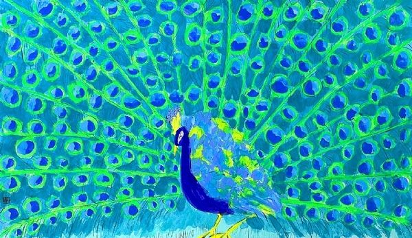 Jean Metzinger painted "A Peacock" using oil on canvas, and the way he built it up is fascinating. It's a mosaic of little dabs and dashes of color, a real testament to process. The texture is key here. The paint isn't smooth, it's a field of individual marks that build up the image. Look at the peacock's tail, the way the blues float on top of the greens. Metzinger isn't trying to hide his process; the physicality of the medium is part of the message. Each tiny stroke seems to vibrate with light, contributing to this sensation of movement. It's like he's asking: How can we see the world anew, bit by bit? It reminds me a little of Seurat but with a playful twist. It's as if Metzinger is inviting us to play with perception and find beauty in the process of making.