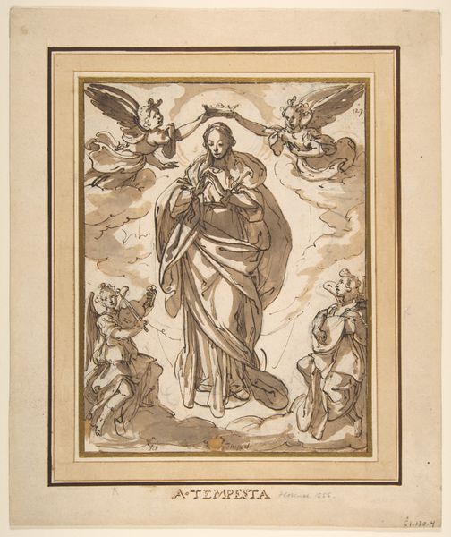 Francesco Mochi rendered this drawing of a candelabra with an angel using pen and brown ink with gray wash. The keys, papal tiara, and dove, symbols of the papacy and the Holy Spirit, are prominent. The angel, wings spread, kneeling in devotion before the candle, evokes a sense of divine presence and the intermediary role of angels in bridging the earthly and heavenly realms. We see similar motifs across time and cultures. Consider the ancient Greek depictions of Nike, the winged goddess of victory, or the Roman personifications of virtues, often depicted with wings. The dove, a symbol of peace and purity, appears in countless works from antiquity to the present day, from early Christian art to modern political imagery. The gesture of kneeling, a sign of submission and reverence, has evolved from ancient rituals of homage to its prominent place in religious iconography. This posture, laden with emotional weight, taps into a collective memory of humility and devotion, engaging viewers on a subconscious level. The cyclical progression of these symbols reminds us that images are never static. They resurface, evolve, and take on new meanings, carrying with them the echoes of history and the enduring power of human emotion.
