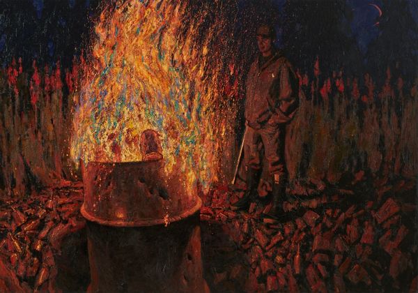 Ernie Barnes made ‘The Bench’ with oil on canvas to show his experience as a football player. Barnes’s choice of oil paint is critical, as its inherent qualities of substance, texture, weight, color and form, have shaped the work’s appearance. See how the thick application of paint creates a rough, almost sculptural surface. This tactile quality invites viewers to consider the physical exertion and labor involved in the scene depicted. The painting illustrates a poignant narrative centered around the experience of athletes, where the benches symbolize the boundaries of opportunity, struggle, and social dynamics. The use of raw, earthy tones emphasizes the physical nature of the sport, with the visible brushstrokes reflecting the artist's engagement with traditions in both painting and social commentary. By focusing on the materiality and craftsmanship, we understand how the medium of painting enhances the work’s meaning, challenging conventional distinctions between fine art and craft.